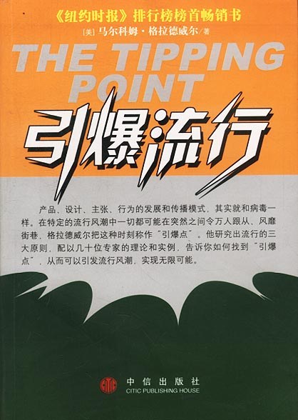 马尔科姆·格拉德威尔以社会上突如其来的流行风潮研究为切入点,从一个全新的角度探索了控制科学和营销模式。他认为,思想、行为、信息以及产品常常会像传染病爆发一样,迅速传播蔓延。正如一个病人就能引起一场全城流感;如果个别工作人员对顾客大打出手,或几位涂鸦爱好者管不住自己,也能在地铁里掀起一场犯罪浪潮;一位满意而归的顾客还能让新开张的餐馆座无虚席。这些现象均属“社会流行潮”,它爆发的那一刻,即达到临界水平的那一刻,就是一个引爆点。