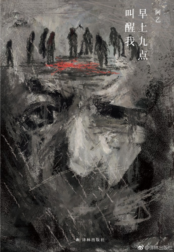 小说名来源自阿乙读过的博尔赫斯的一本访谈录。博尔赫斯提到要写一篇短篇小说,题目叫《 早上九点叫醒我》。但在博尔赫斯的作品里,阿乙并没有发现这部小说,便就用这句话——早上九点叫醒我——做书名。小说里,主人公宏阳喝醉后,向自己的内人叮嘱,让她做一个人体闹钟,到了早上叫醒他。次日晨,等到要叫醒他的时候,他的内人发现他已经死了:他把自己喝“死”了。