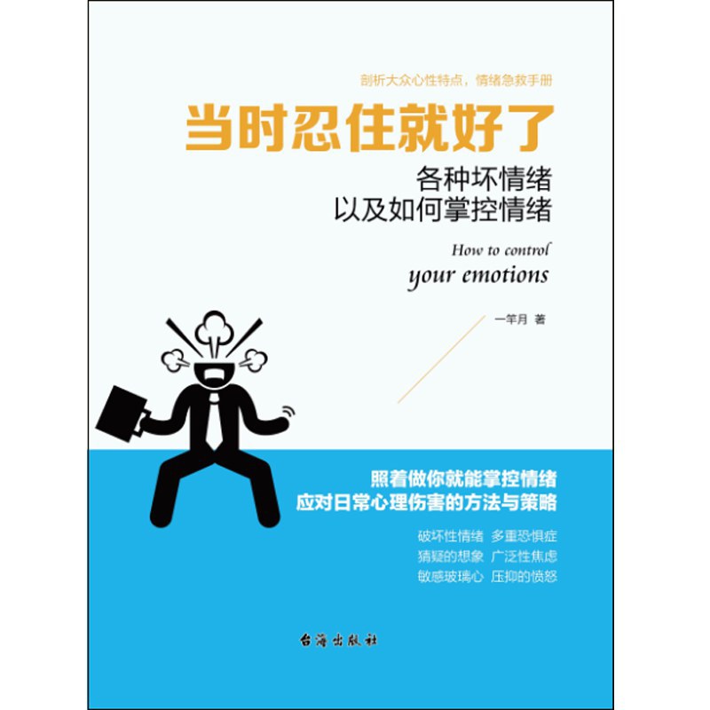《当时忍住就好了》从情绪失控、情绪管理角度着手,分析了如何在婚姻家庭、职场、人际交往等日常生活的场景中,控制好焦虑、紧张、愤怒、沮丧、悲伤、痛苦等负面情绪,以及如何将心理产生的消极倾向弱化,避免情绪失控。
