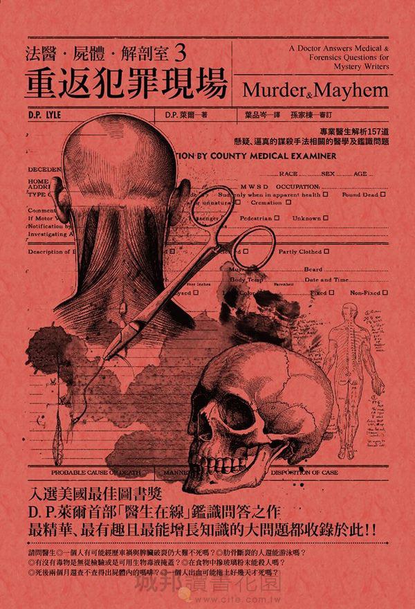 在回答關於鑑識科學的問題時,萊爾醫生總能神準地判斷作者們需要知道些什麼。針對作者們向他提出的問題,他的精彩解答既精確又說明得一清二楚。他會把你想要的醫學術語提供給你,也會把你需要知道的定義告訴你。